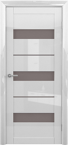 Дверь Прага ширина 90 см Белый глянец Глянец Стекло мателюкс бронза с замком в Иваново