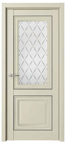 Дверь Спарта-2 с молдингом ширина 80 см Ваниль Vinyl Стекло мателюкс "Лорд черный" Молдинг черный в Иваново